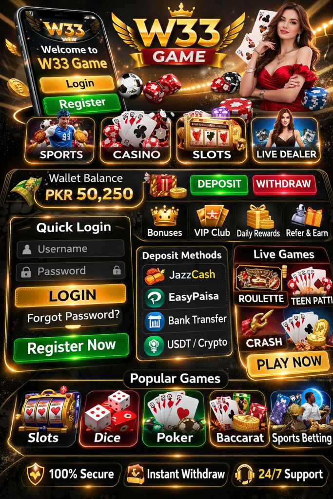 W33 Game is a popular online gaming platform that is growing very fast in Pakistan. This platform is specially designed for people who want to enjoy entertainment and also have an interest in earning money. In this platform, users get a unique combination of Slots games, card games, and different tournaments, which help improve their skills and make the experience more interesting.